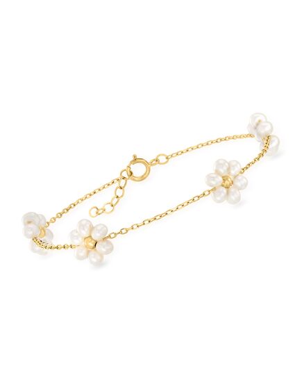 Ross-Simons 3-3.5mm Cultured Pearl Flower Bracelet in 14kt Yellow Gold