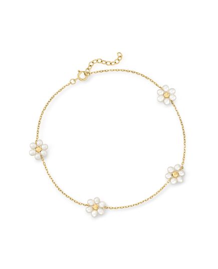Ross-Simons 3-3.5mm Cultured Pearl Flower Station Anklet in 14kt Yellow Gold