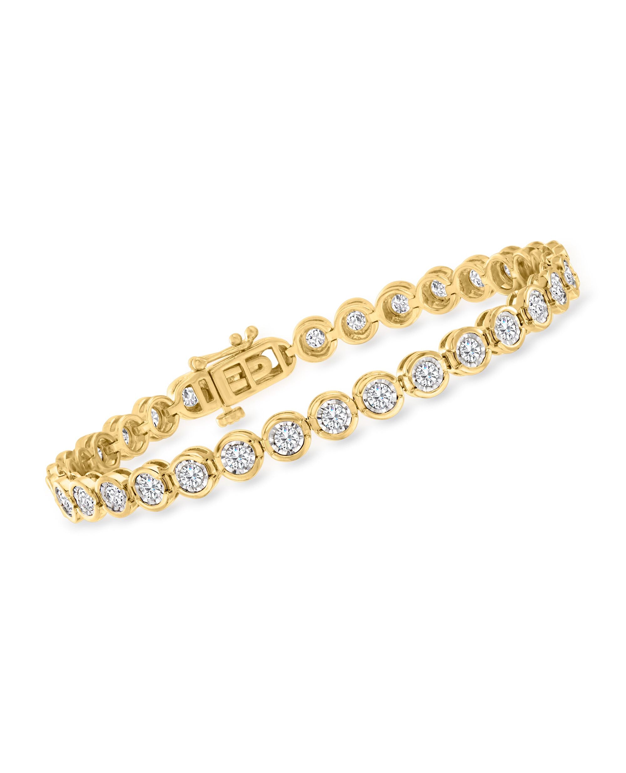 Ross-Simons 3.00- Bezel-Set Diamond Tennis Bracelet in 18kt Gold Over Sterling