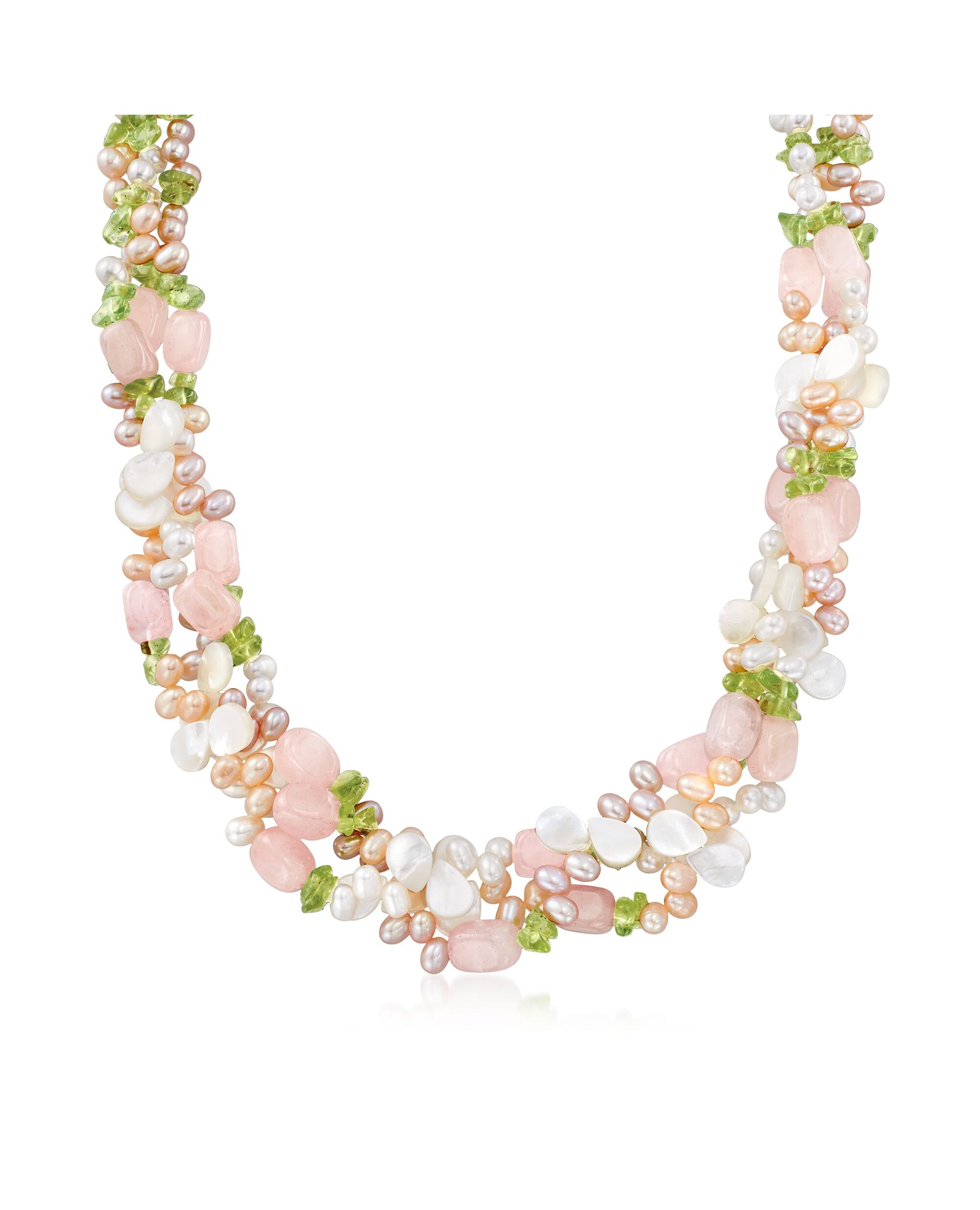 Ross-Simons 4-5mm Multicolored Cultured Pearl and Multi-Stone Torsade Necklace With Sterling Silver
