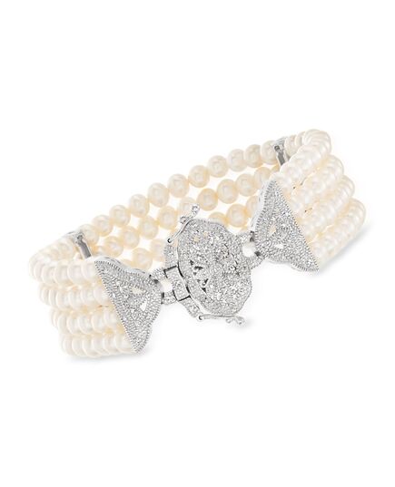 Ross-Simons 4.5-5mm Cultured Pearl and . Diamond Multi-Strand Bracelet in Sterling Silver