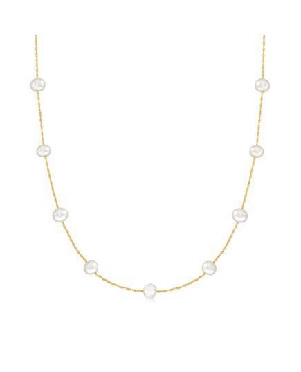 Ross-Simons is the authority on fashionable must-haves. An essential for any stylish collection, this sophisticated necklace features 5-5.mm cultured freshwater pearls stationed around a dainty 14kt yellow gold rope chain. Perfect alone or as the classically lovely and feminine addition to an on-trend layered look. Springring clasp, white pearl station necklace. Each Ross-Simons item arrives in a fine jewelry presentation box. Shop Ross-Simons jewelry risk-free as all items include a 30-day, 100% money-back guarantee.Pearl InformationPearl Type 1 - Freshwater-CulturedPearl Minimum Color 1 - WhitePearl Lustre 1 - Medium-LusterPearl Shape 1 - Semi-RoundPearl Uniformity 1 - GoodPearl Surface Blemishes 1 - Moderately BlemishedPearl Stringing Method 1 - Moderately BlemishedSize Per Pearl 1 - 5-5.5mmNumber Of Pearls 1 - 17