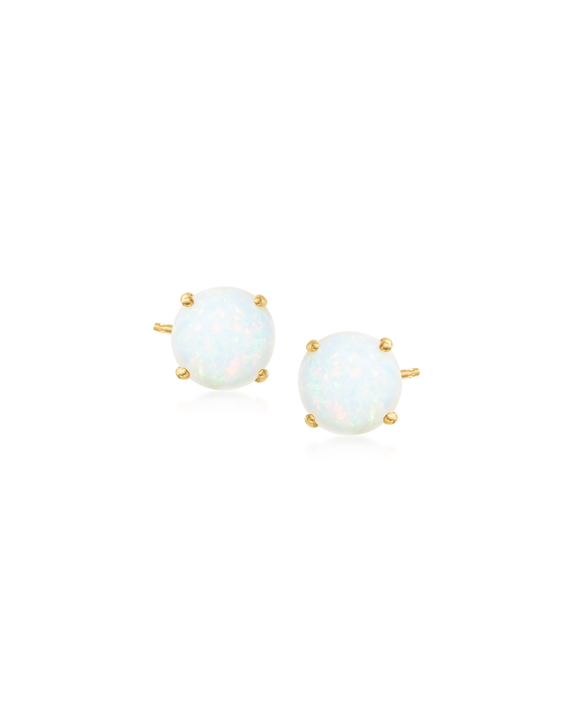 Ross-Simons 5mm Opal Stud Earrings in 14kt Yellow Gold