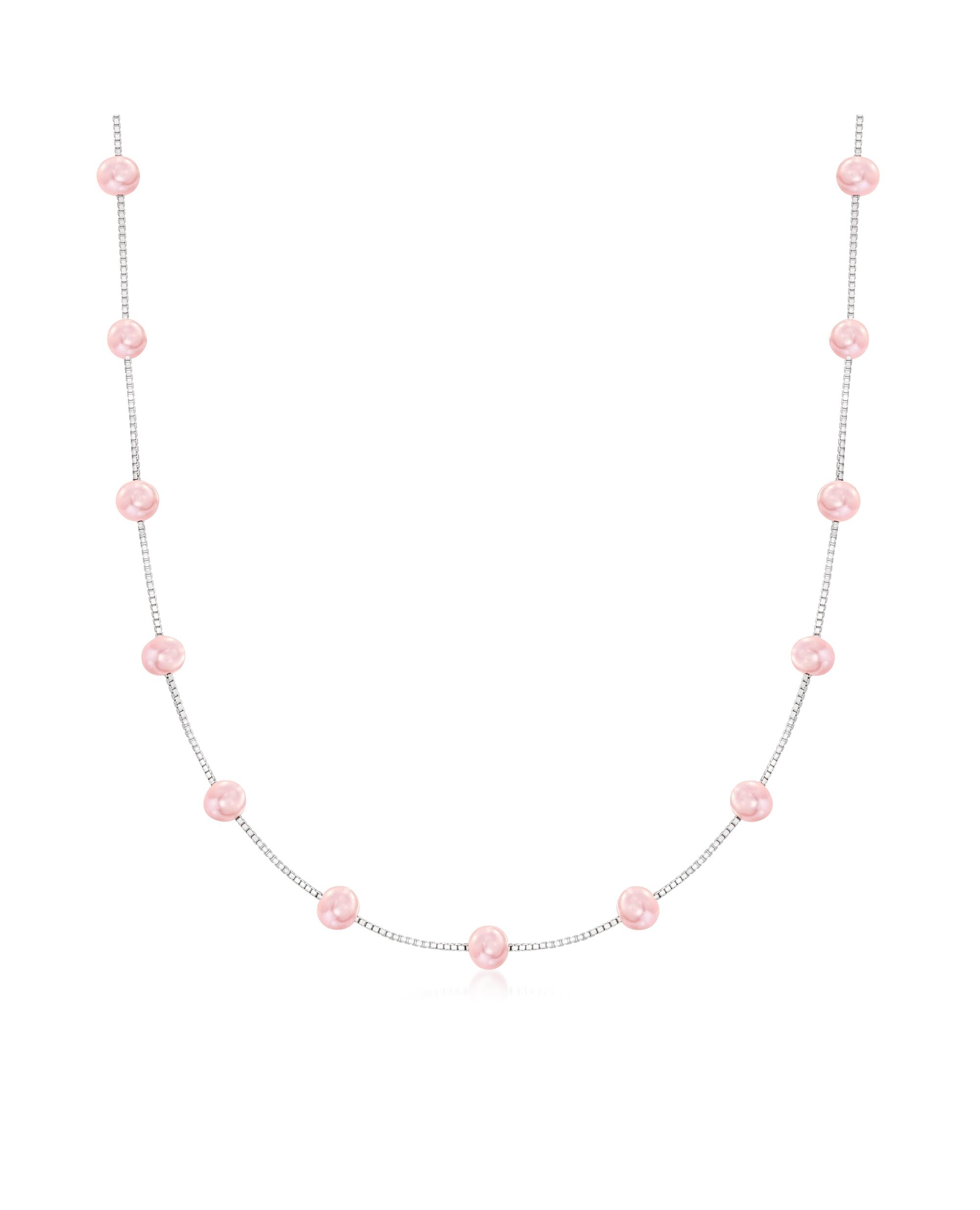 Ross-Simons 6-6.5mm Pink Cultured Pearl Station Necklace in Sterling Silver