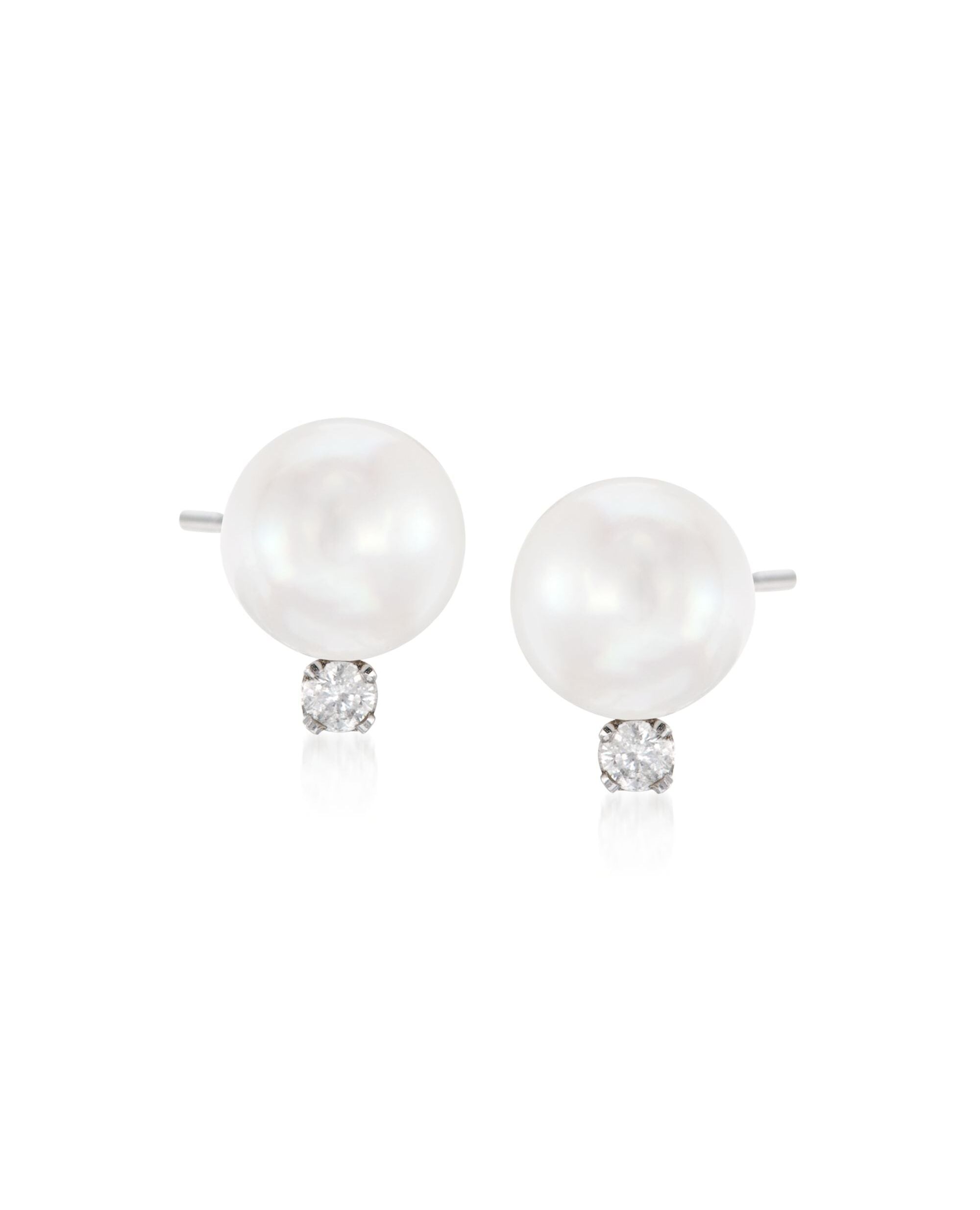 Ross-Simons 6-6.5mm Cultured Akoya Pearl and Diamond Accent Earrings in 14kt White Gold