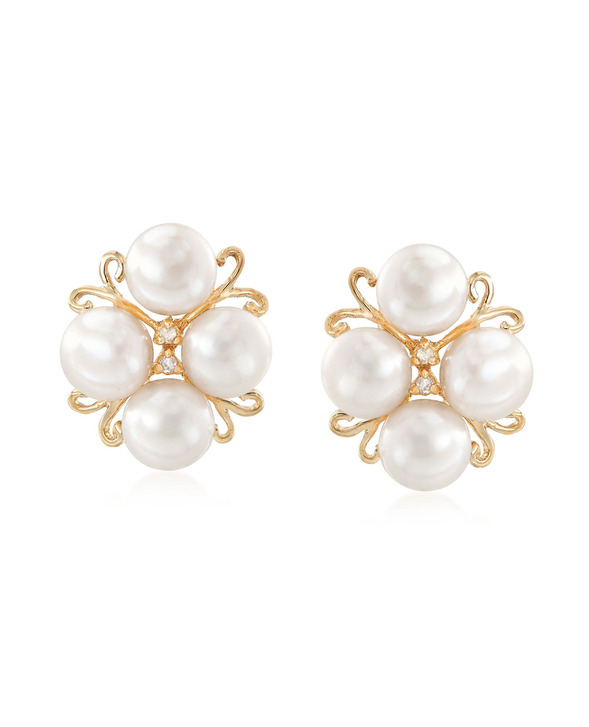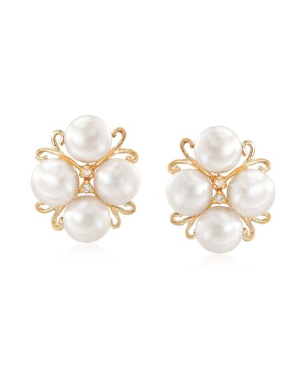Ross-Simons 6-6.5mm Cultured Pearl Cluster Earrings With Diamond Accents in 14kt Gold