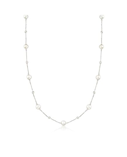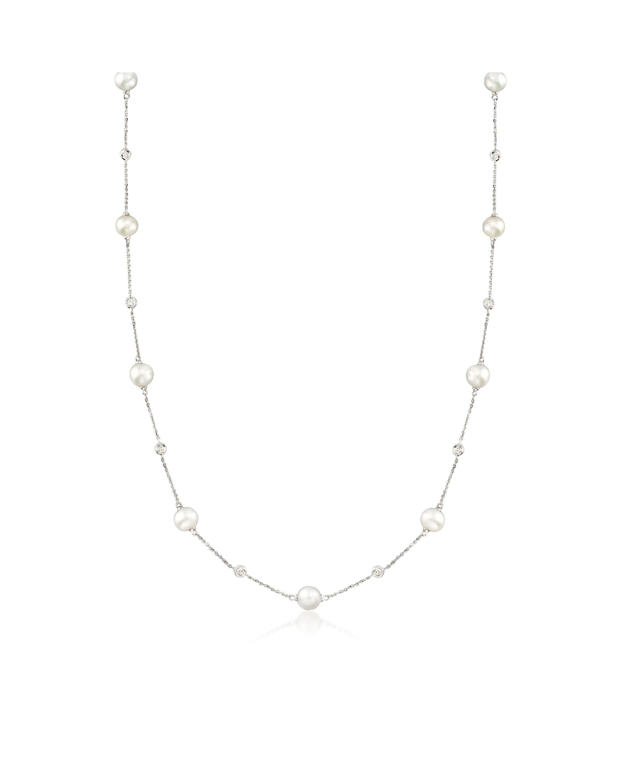 Ross-Simons 6-7mm Cultured Pearl and . Diamond Station Necklace in 14kt White Gold