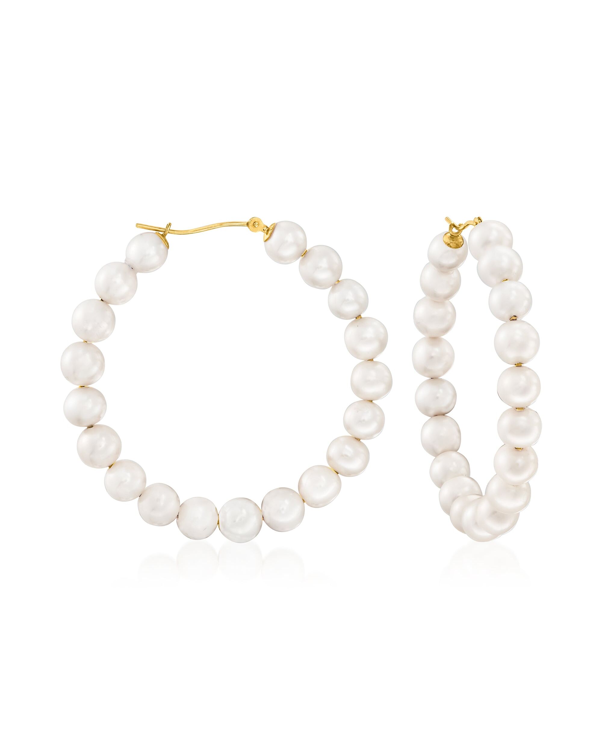 Ross-Simons 6-7mm Cultured Pearl Hoop Earrings in 14kt Yellow Gold