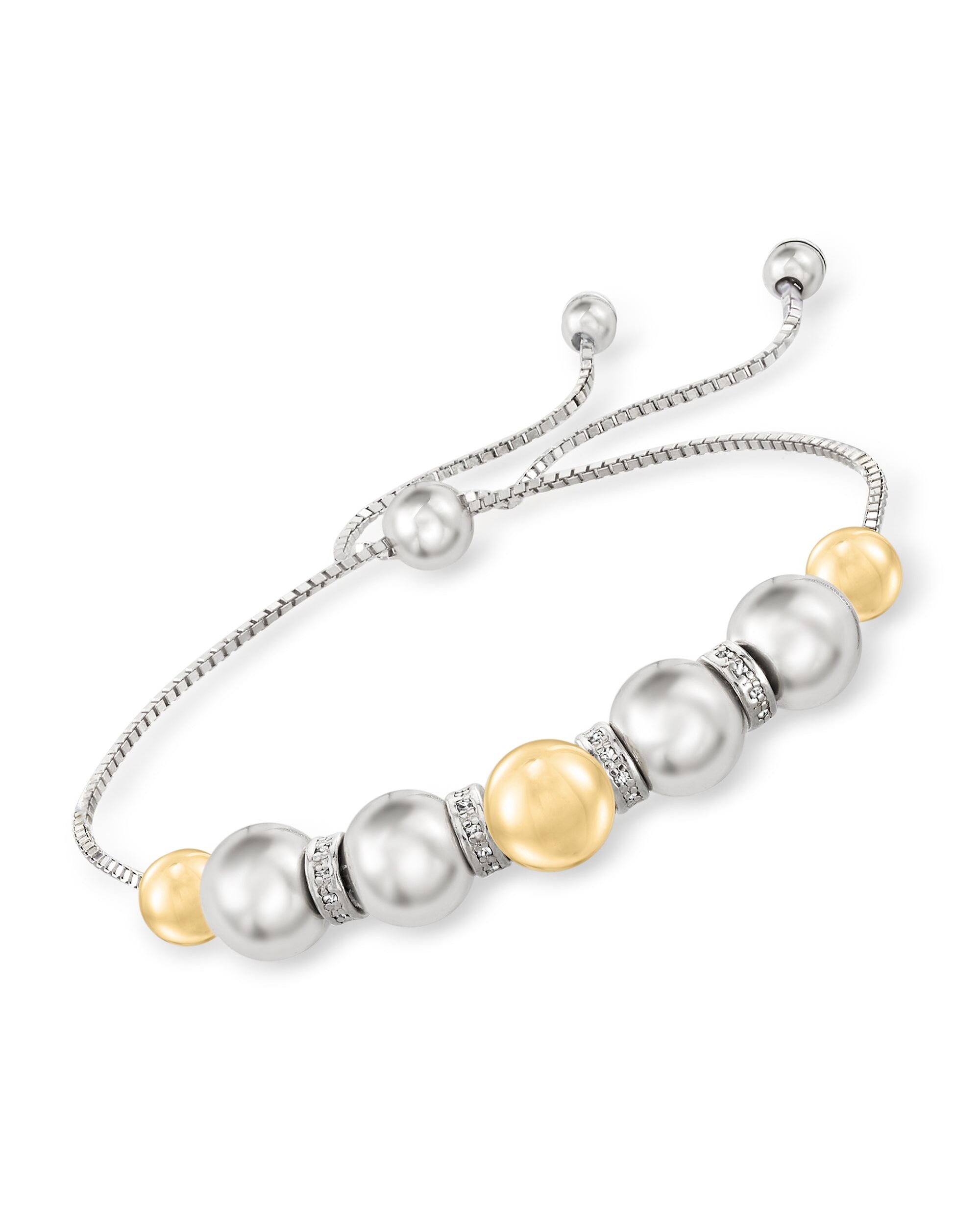 Ross-Simons 6-8mm Sterling Silver and 14kt Yellow Gold Bead Bolo Bracelet With . Diamonds