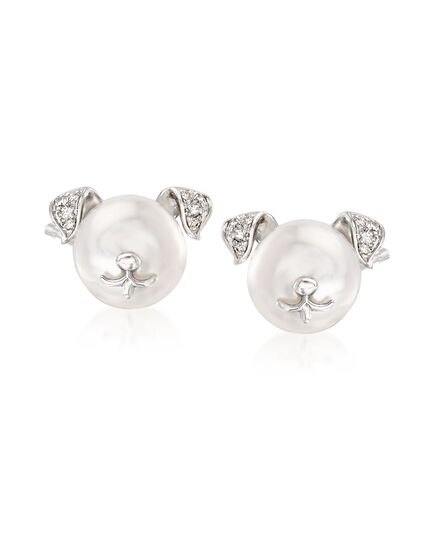 Ross-Simons 8-8.5mm Cultured Pearl Dog Earrings With Diamond Accents in Sterling Silver