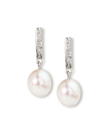 Ross-Simons 8-9mm Cultured Pearl Dangle Earrings With Diamond Accents in Sterling Silver