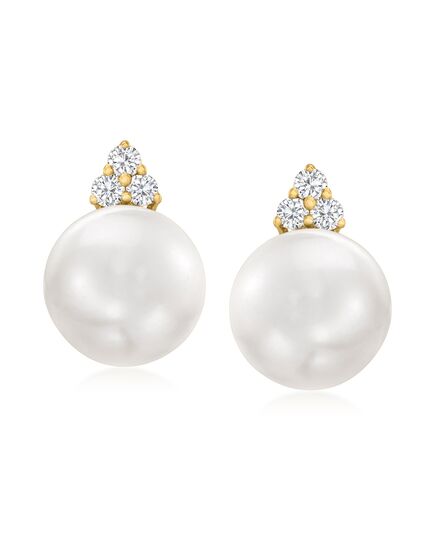 Ross-Simons 8.5-9mm Cultured Pearl and . Diamond Drop Earrings in 14kt Yellow Gold