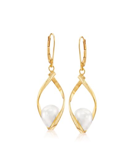 Ross-Simons 8.5-9mm Cultured Pearl Twisted Drop Earrings in 14kt Yellow Gold