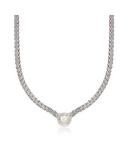 Ross-Simons 8mm Cultured Pearl Flat Wheat Chain Necklace in Sterling Silver