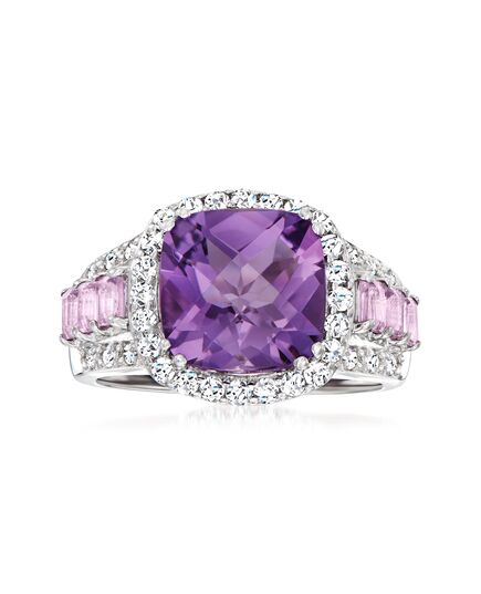 Ross-Simons Amethyst and . White Topaz Ring With Diamond Accents in Sterling Silver