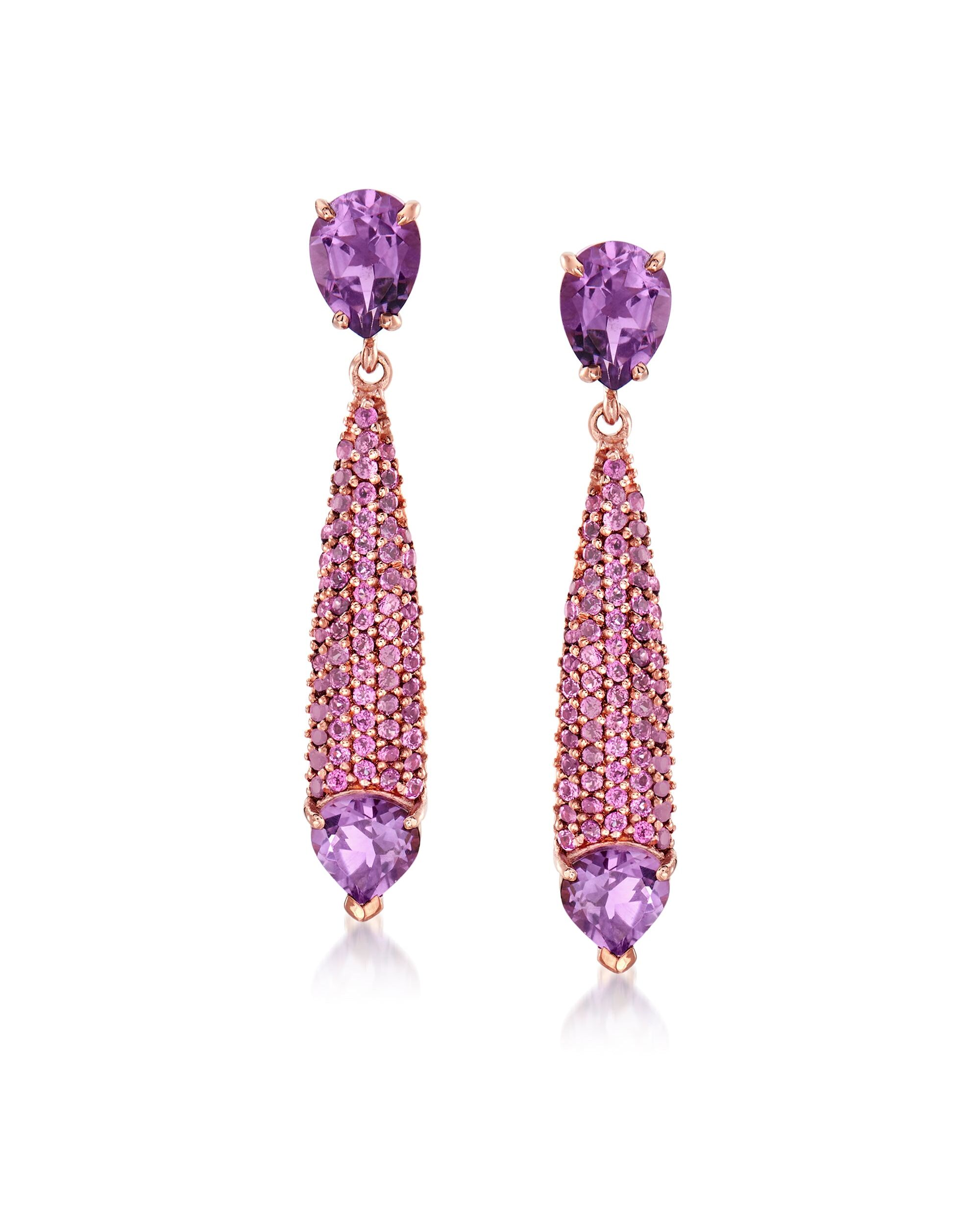 Ross-Simons Amethyst and Rhodolite Garnet Drop Earrings in 18kt Rose Gold Over Sterling