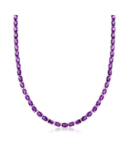 Ross-Simons is always looking for new ways to reinvent essential jewelry styles. Show your regal side with majestic amethyst. This tennis necklace shines from end to end with 40.00 ct. t.w. of rich purple amethyst ovals. Box clasp, sterling silver necklace. Each Ross-Simons item arrives in a fine jewelry presentation box. Shop Ross-Simons jewelry risk-free as all items include a 30-day, 100% money-back guarantee.Stone InformationGem Type 1 - AmethystStone Cut 1 - Good-CutStone Color 1 - Violet-BlueStone Clarity 1 - Violet-BlueStone Shape 1 - Oval-ShapeStone Creation Method 1 - NaturalStone Treatment Method 1 - Heat-TreatedStone Weight 1 - 40.00-45.00 CaratsNumber Of Stones 1 - 61-71
