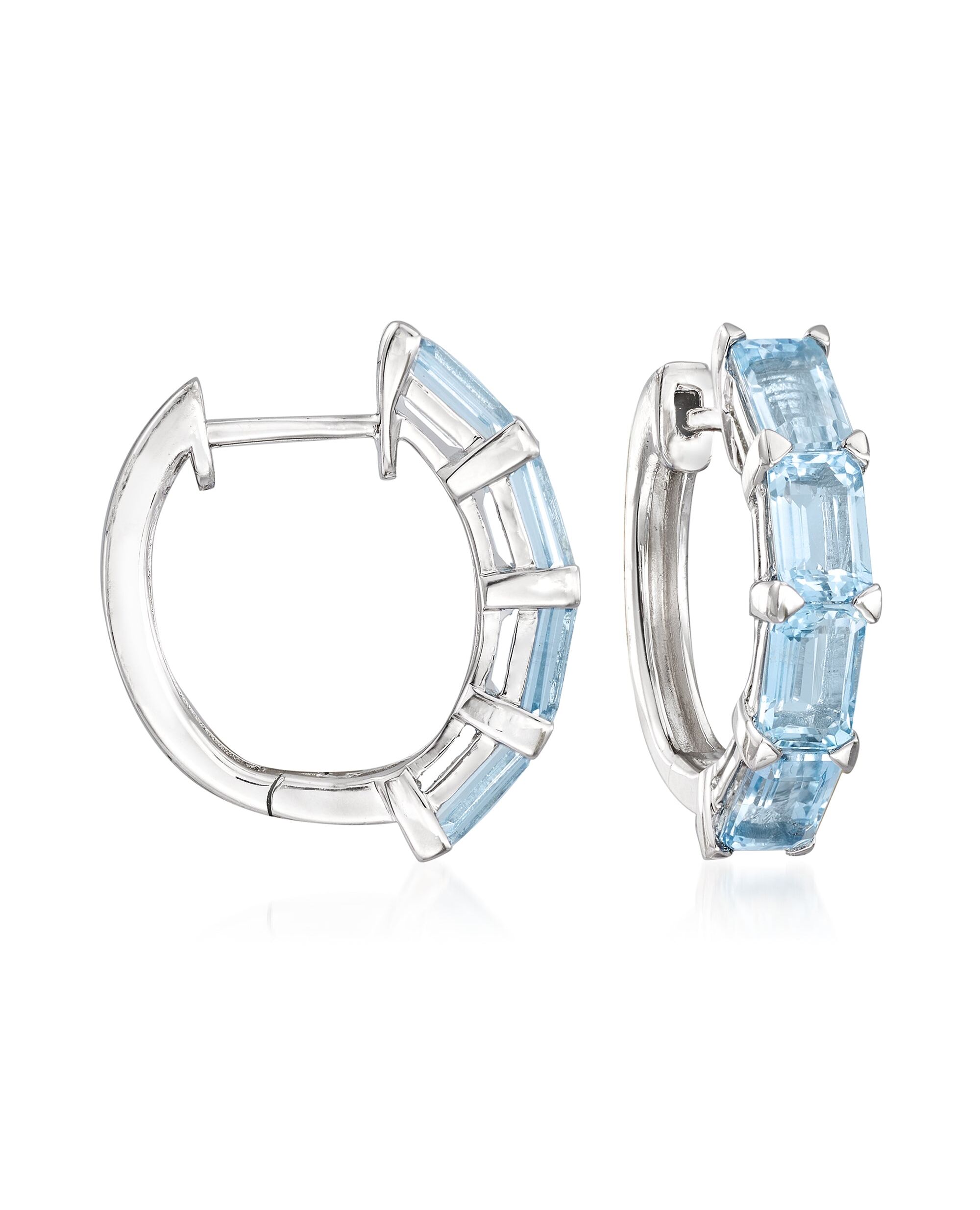 Ross-Simons Aquamarine Hoop Earrings in Sterling Silver