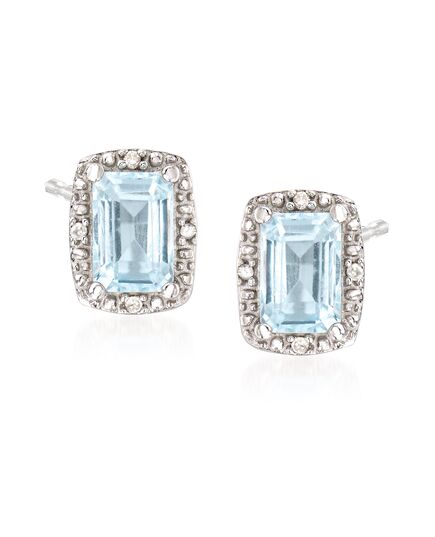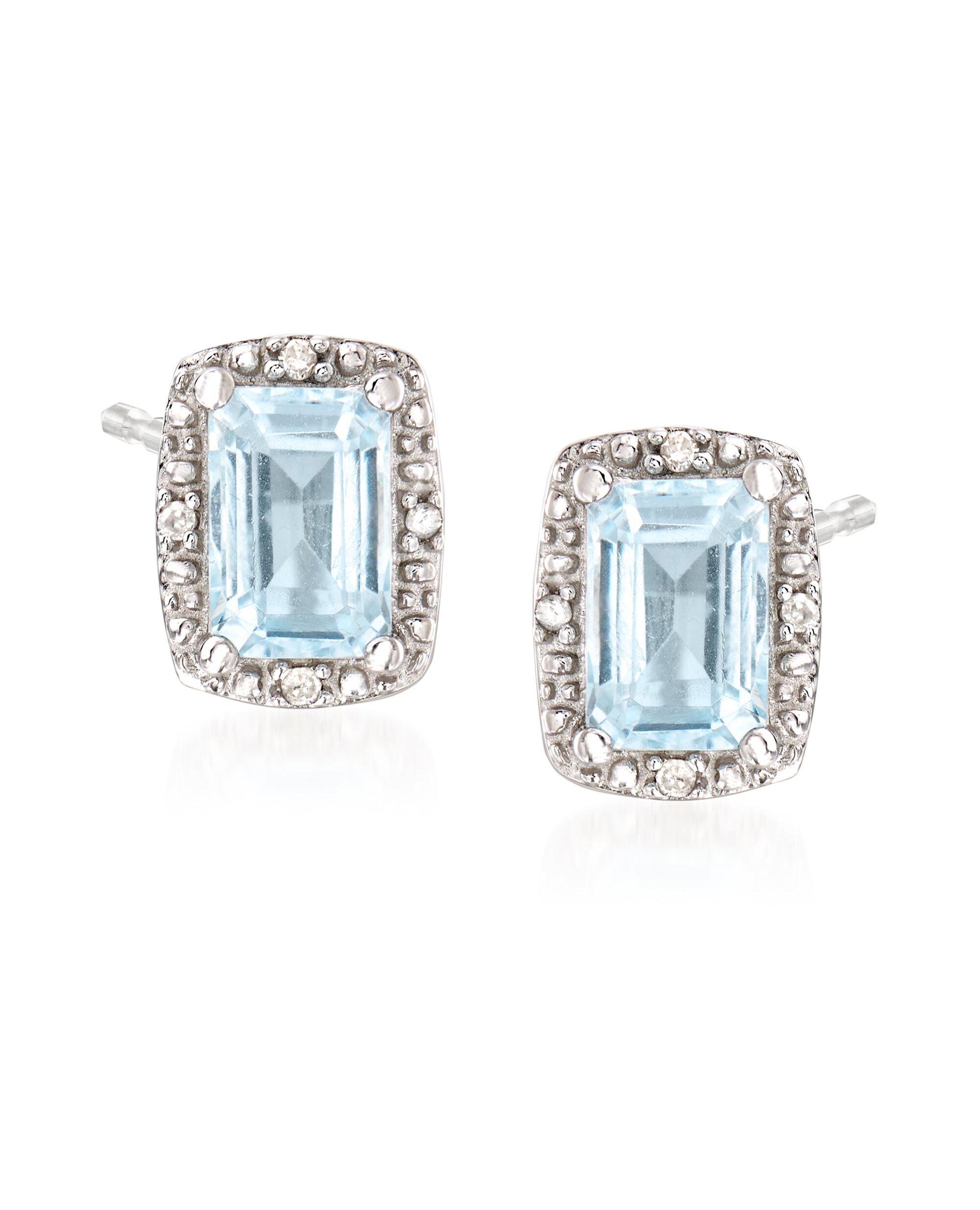 Ross-Simons Aquamarine Stud Earrings With Diamond Accents in Sterling Silver