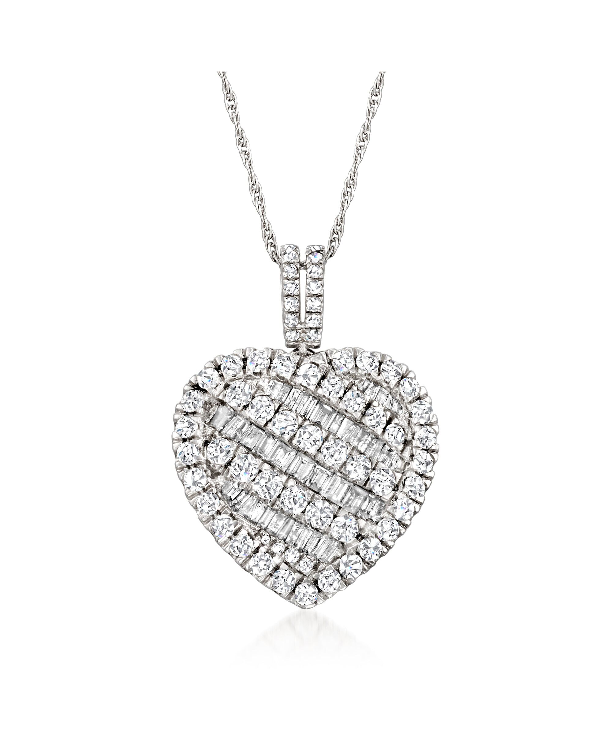 Ross-Simons Baguette and Round Heart Pendant Necklace in Sterling Silver