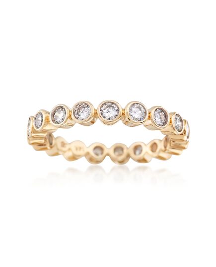 Established in 1952, Ross-Simons brings jewelry classics into the modern era. The classic beauty of 1.00 ct. t.w. diamonds is brought to an elegant new level in this statement-making bezel-set eternity band. Each diamond round is hugged by polished 14kt yellow gold for a look with a lighthearted spirit and so much charm. Diamond eternity band. Each Ross-Simons item arrives in a fine jewelry presentation box. Shop Ross-Simons jewelry risk-free as all items include a 30-day, 100% money-back guarantee.Stone InformationGem Type 1 - DiamondStone Cut 1 - Good-CutStone Color 1 - I-JStone Clarity 1 - I2Stone Shape 1 - Round-ShapeStone Creation Method 1 - NaturalStone Treatment Method 1 - Not-TreatedStone Weight 1 - 1.00 CaratsNumber Of Stones 1 - 16-0