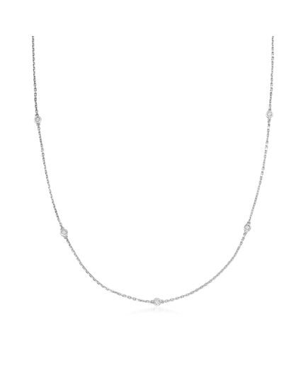 Ross-Simons presents contemporary styles with a timeless appeal. A perfect choice for delicate layering, this necklace is a must-have foundation piece for your collection. Bezeled 0.25 ct. t.w. round brilliant-cut diamonds are delicately stationed on a polished sterling silver cable chain. Lobster clasp, diamond station necklace. Each Ross-Simons item arrives in a fine jewelry presentation box. Shop Ross-Simons jewelry risk-free as all items include a 30-day, 100% money-back guarantee.Stone InformationGem Type 1 - DiamondStone Cut 1 - Good-CutStone Color 1 - I-JStone Clarity 1 - I3Stone Shape 1 - Round-ShapeStone Creation Method 1 - NaturalStone Treatment Method 1 - Not-TreatedStone Weight 1 - 0.25-0.50 CaratsNumber Of Stones 1 - 7-14