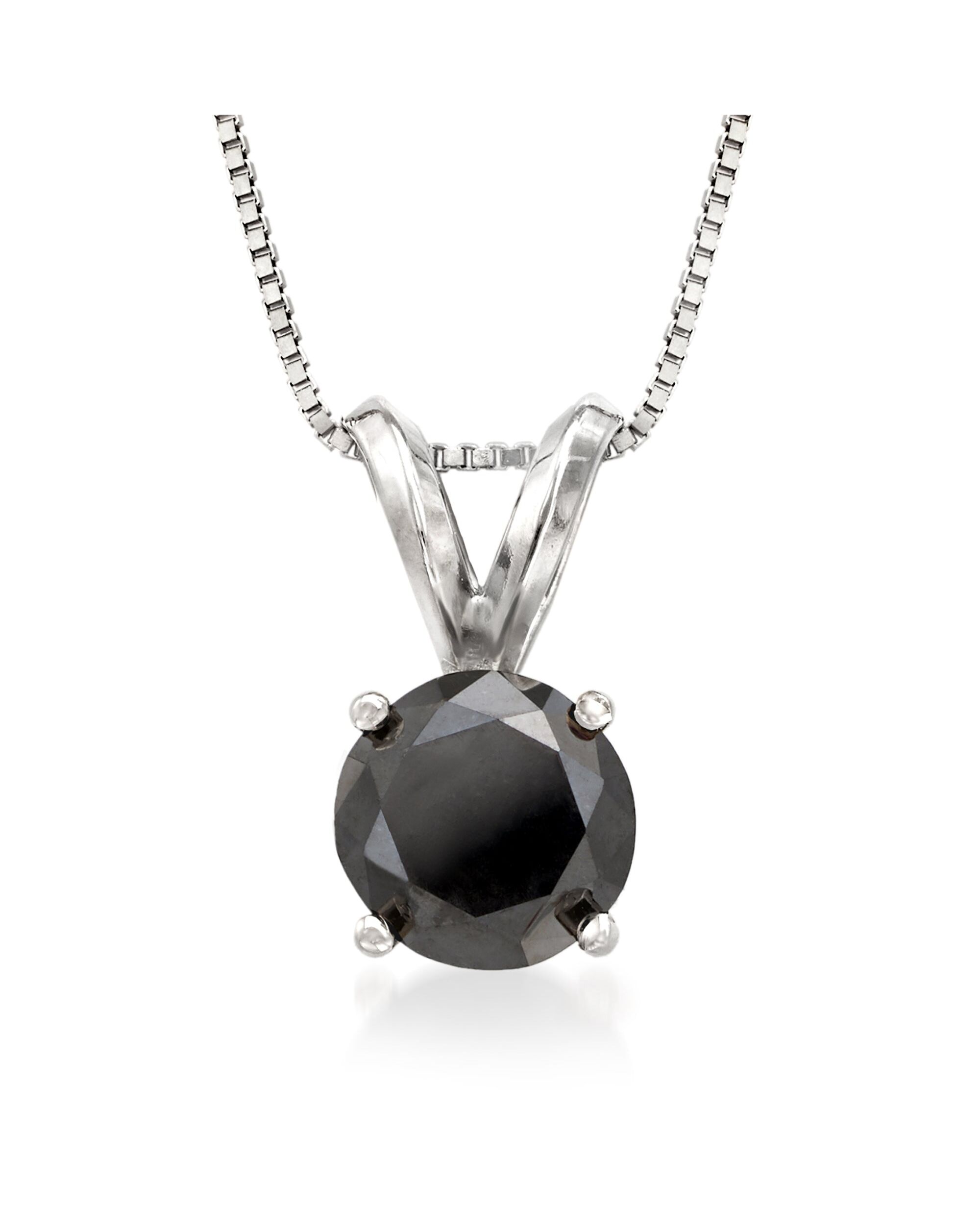 Ross-Simons Black Diamond Solitaire Necklace in 14kt White Gold