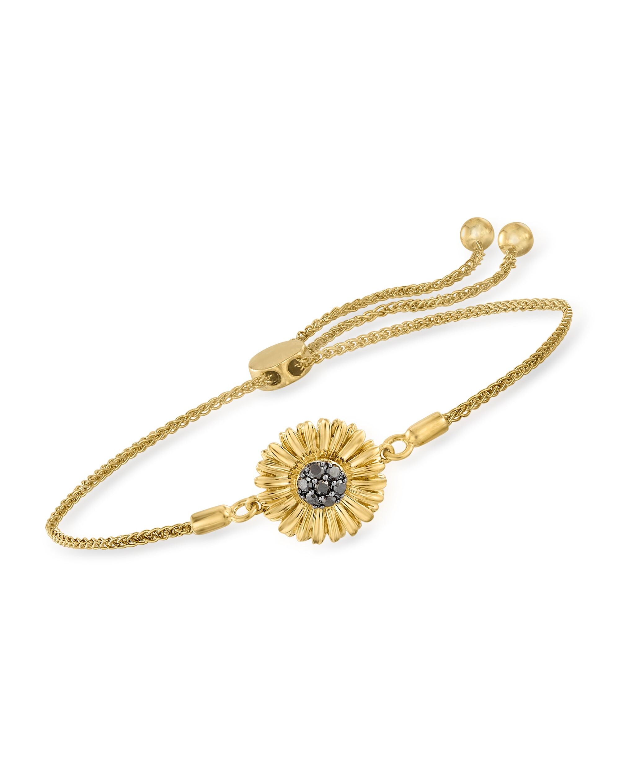 Ross-Simons Black Diamond Sunflower Bolo Bracelet in 18kt Gold Over Sterling