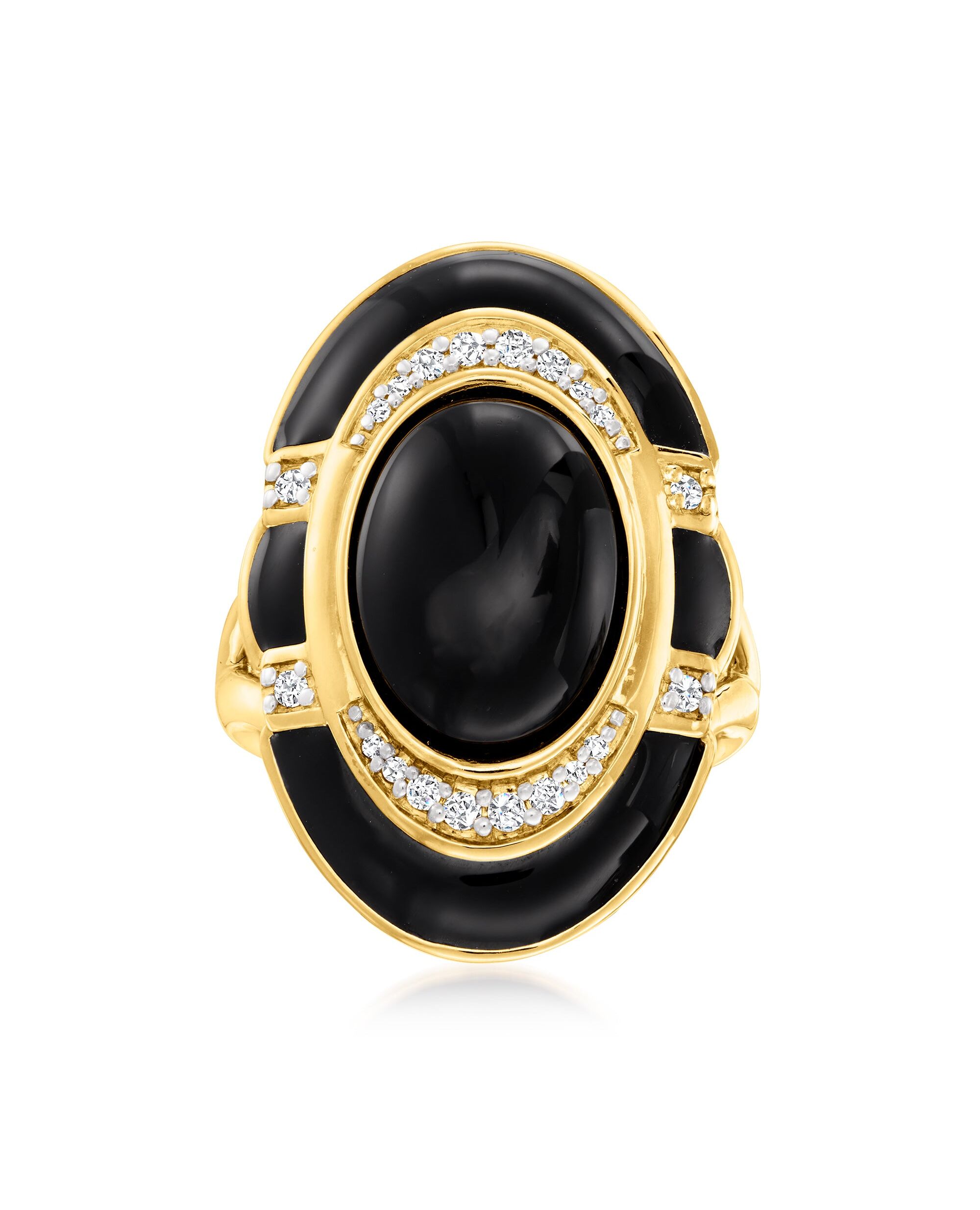 Ross-Simons Black Onyx and Diamond Ring With Black Enamel in 18kt Gold Over Sterling