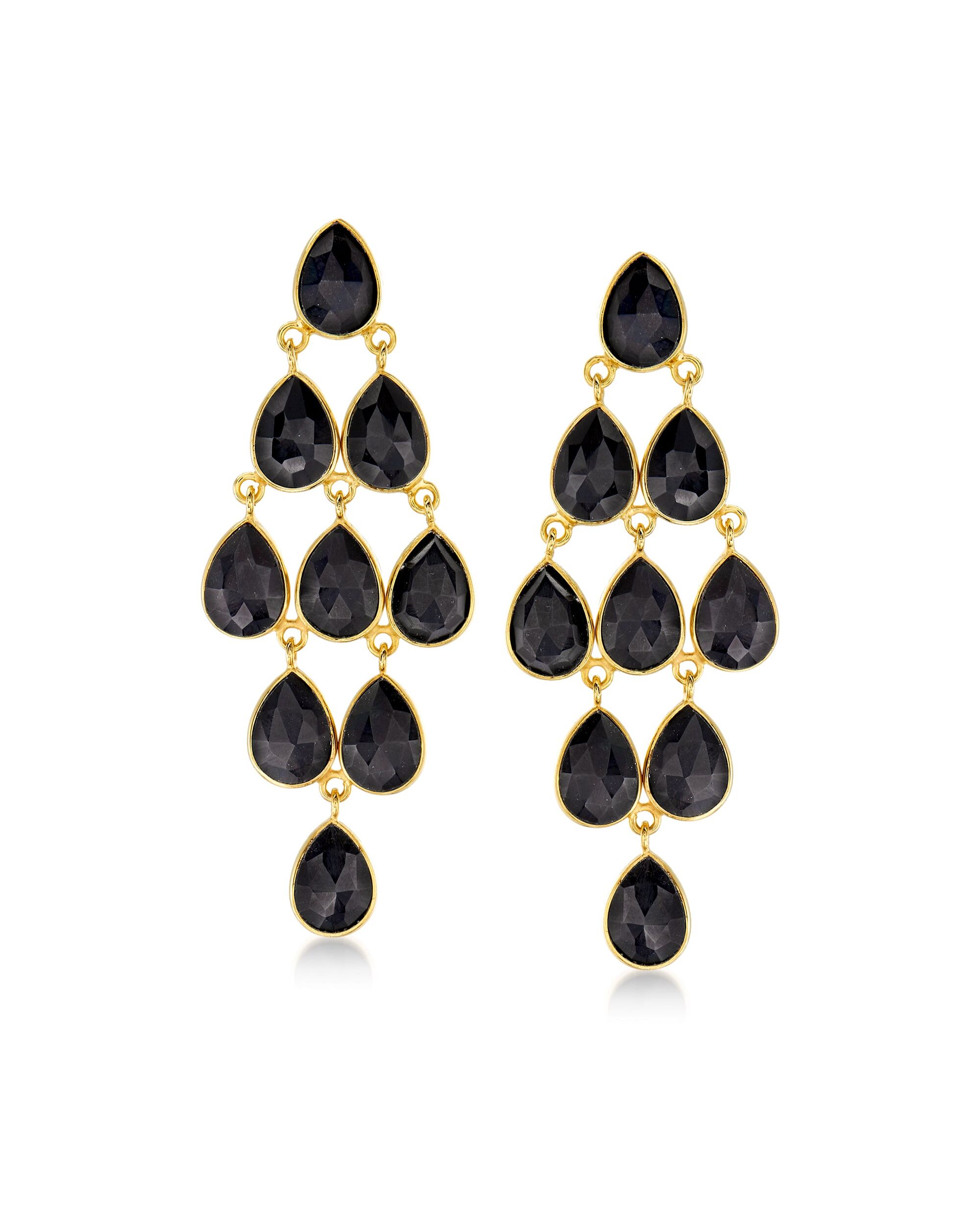 Ross-Simons Black Onyx Chandelier Earrings in 18kt Gold Over Sterling