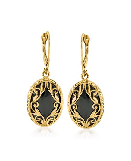 Ross-Simons Black Onyx Drop Earrings in 14kt Yellow Gold