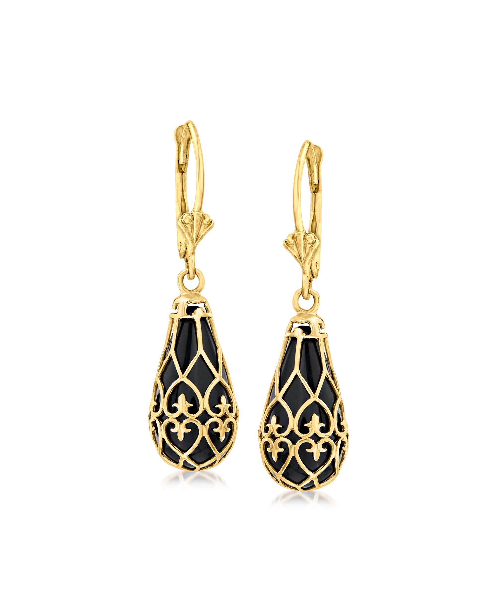 Ross-Simons Black Onyx Teardrop Earrings in 14kt Yellow Gold