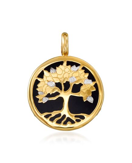 Ross-Simons Black Onyx Tree Of Life Pendant in 14kt Yellow Gold
