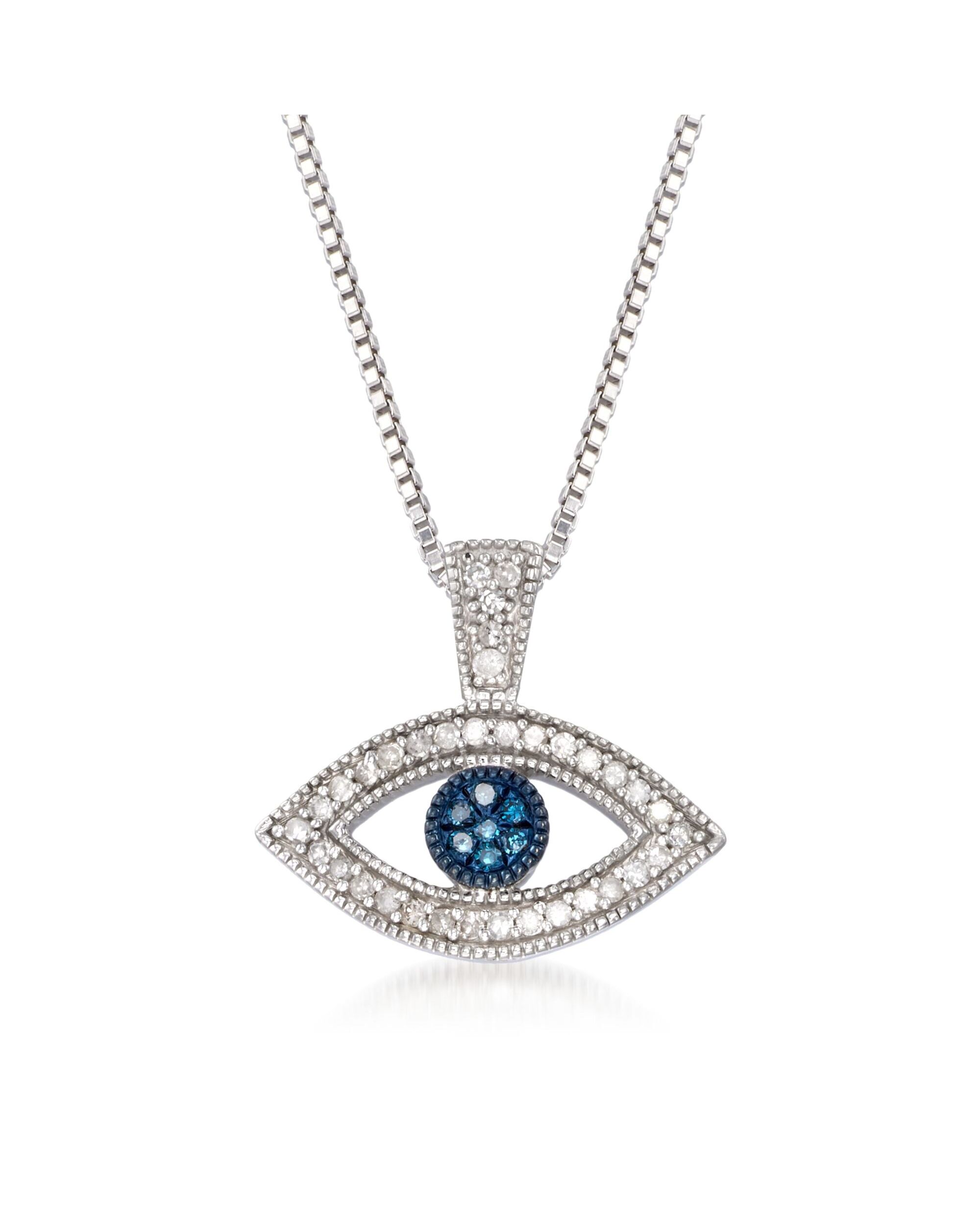 Ross-Simons Blue and White Diamond Evil Eye Pendant Necklace in Sterling Silver