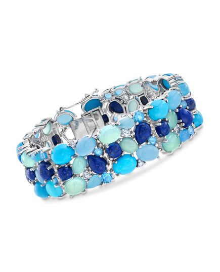 Ross-Simons Blue and White Multi-Stone Cluster Bracelet in Sterling Silver