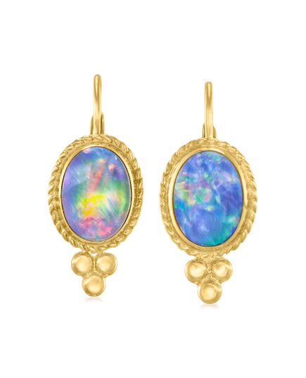 Ross-Simons Blue Opal Triplet Drop Earrings in 14kt Yellow Gold