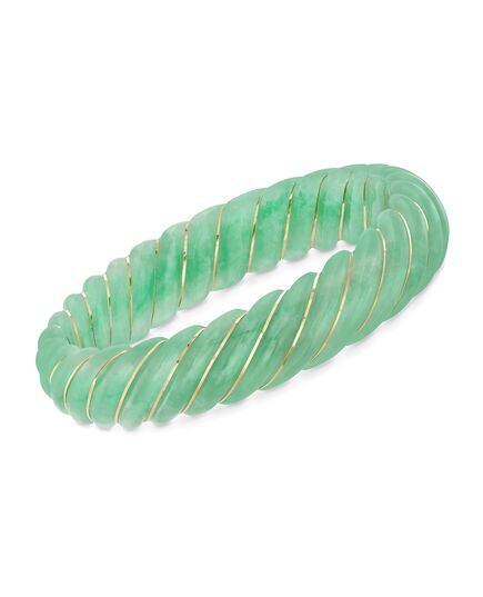 Ross-Simons Carved Green Jade Bangle Bracelet With 14kt Yellow Gold