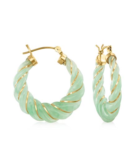 Ross-Simons Carved Lapis Hoop Earrings With 14kt Yellow Gold