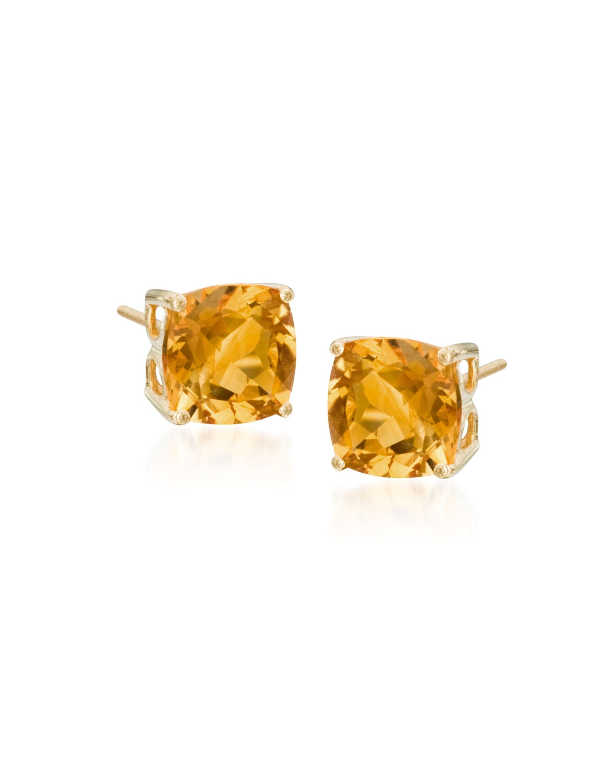 A top-rated jeweler since 1952, Ross-Simons travels the world to find high-quality styles at the best prices. A delightful sunny display for every season! Bring warmth to your life and accessorize with color! Delightful cushion cut citrines totaling 4.00 ct. t.w. are set in polished 14kt yellow gold with post/clutch backing with marvelous results. Each Ross-Simons item arrives in a fine jewelry presentation box. Shop Ross-Simons jewelry risk-free as all items include a 30-day, 100% money-back guarantee.Stone InformationGem Type 1 - CitrineStone Cut 1 - Good-CutStone Color 1 - YellowStone Clarity 1 - YellowStone Shape 1 - Special-Cut-ShapeStone Creation Method 1 - NaturalStone Treatment Method 1 - Heat-TreatedStone Weight 1 - 3.60 CaratsNumber Of Stones 1 - 2