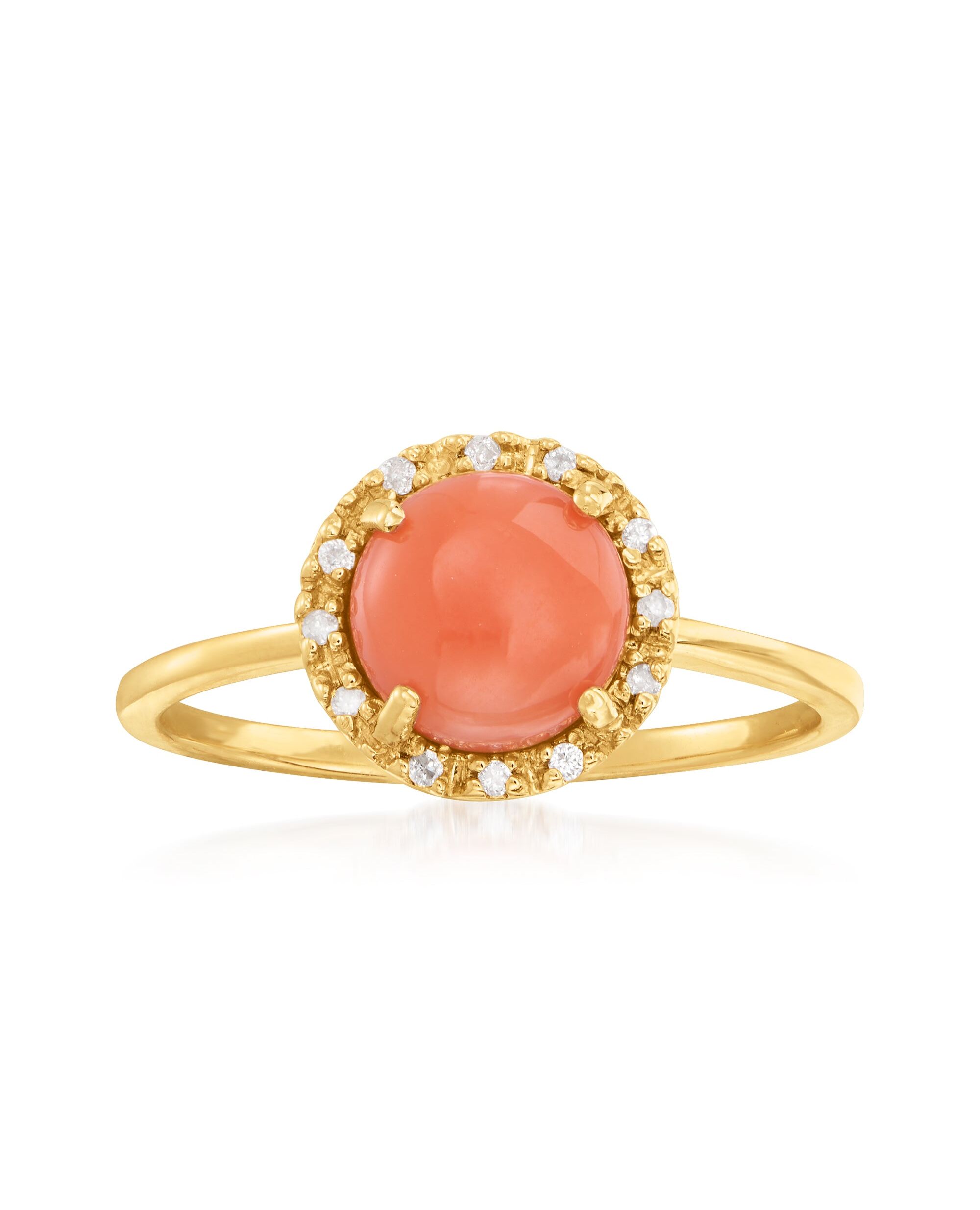 Ross-Simons Coral Ring With Diamond Accents in 14kt Yellow Gold