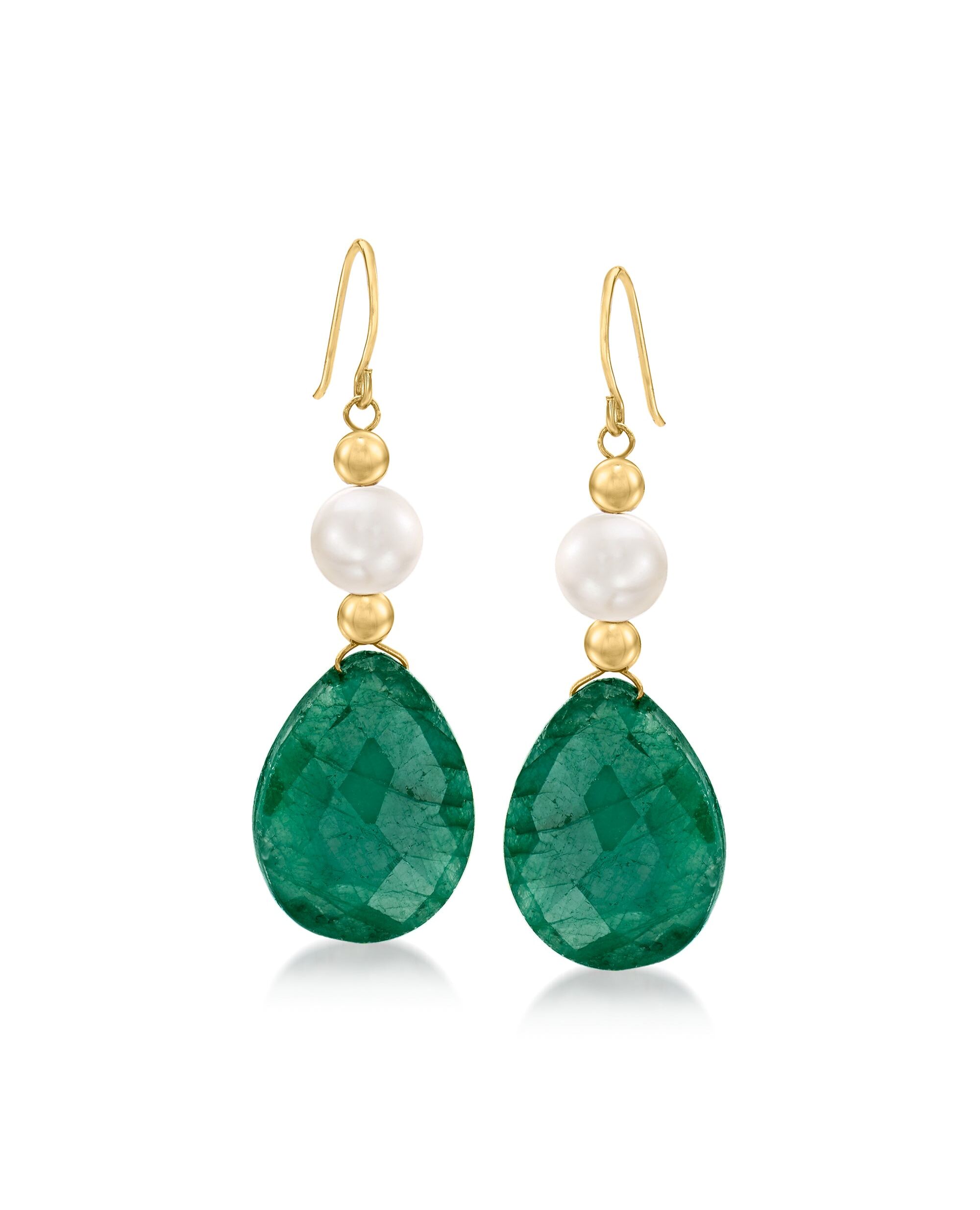 Ross-Simons Cultured Pearl and Emerald Drop Earrings in 14kt Yellow Gold