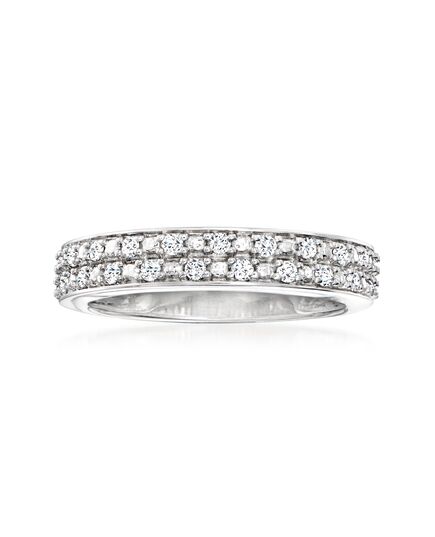 Ross-Simons travels the world to find beautiful, high-quality styles at the best prices. Our sterling silver ring brings on the sparkle. 0.25 ct. t.w. round brilliant-cut diamonds line up in two rows, glittering from all angles. Polished finish. 1/8" wide. Diamond double-row ring. Each Ross-Simons item arrives in a fine jewelry presentation box. Shop Ross-Simons jewelry risk-free as all items include a 30-day, 100% money-back guarantee.Stone InformationGem Type 1 - DiamondStone Cut 1 - Good-CutStone Color 1 - I-JStone Clarity 1 - I2Stone Shape 1 - Round-ShapeStone Creation Method 1 - NaturalStone Treatment Method 1 - Not-TreatedStone Weight 1 - 0.25 CaratsNumber Of Stones 1 - 20
