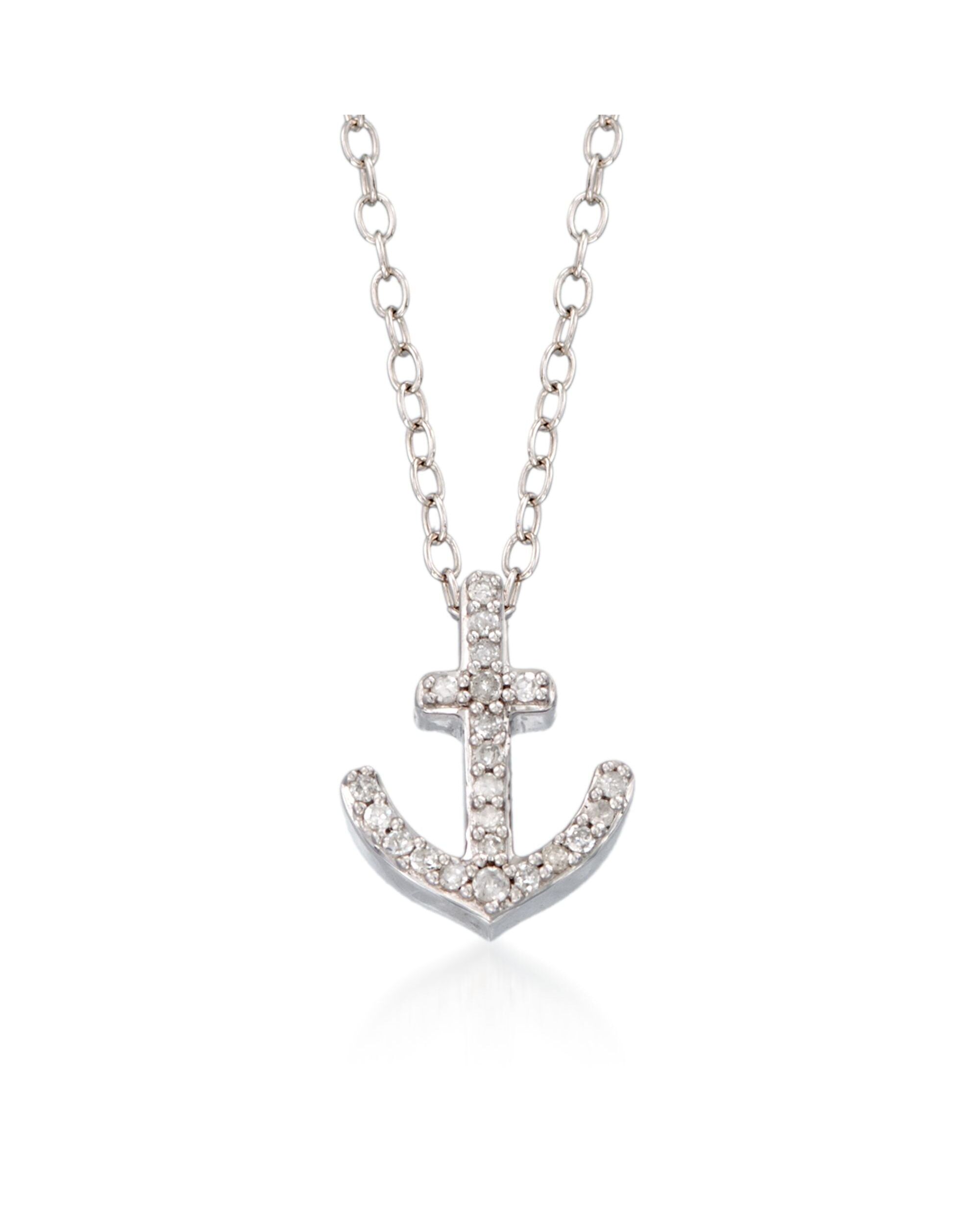Ross-Simons Diamond Anchor Pendant Necklace in Sterling Silver