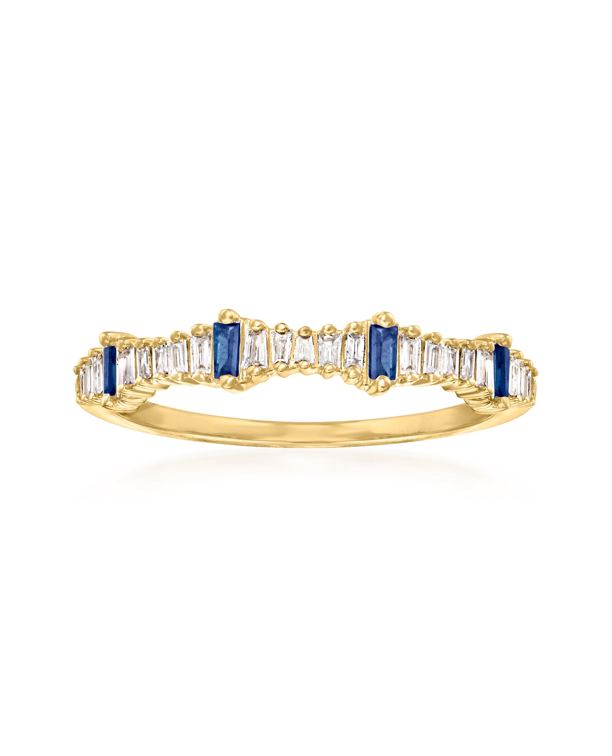 Ross-Simons is always looking for new ways to reinvent essential jewelry styles. This colorful ring will be a staple to your stack. It features 0.14 ct. t.w. baguette diamonds with .10 ct. t.w. baguette sapphires in polished 14kt yellow gold. 1/8" wide. Diamond and sapphire stackable ring. Each Ross-Simons item arrives in a fine jewelry presentation box. Shop Ross-Simons jewelry risk-free as all items include a 30-day, 100% money-back guarantee.Stone InformationGem Type 1 - SapphireStone Cut 1 - Good-CutStone Color 1 - BlueStone Clarity 1 - BlueStone Shape 1 - Baguette-ShapeStone Creation Method 1 - NaturalStone Treatment Method 1 - HeatedStone Weight 1 - 0.10 CaratsNumber Of Stones 1 - 4Gem Type 2 - DiamondStone Cut 2 - Good-CutStone Color 2 - H-IStone Clarity 2 - I1Stone Shape 2 - Rectangular-ShapeStone Creation Method 2 - NaturalStone Treatment Method 2 - Not-TreatedStone Weight 2 - 0.14 CaratsNumber Of Stones 2 - 21