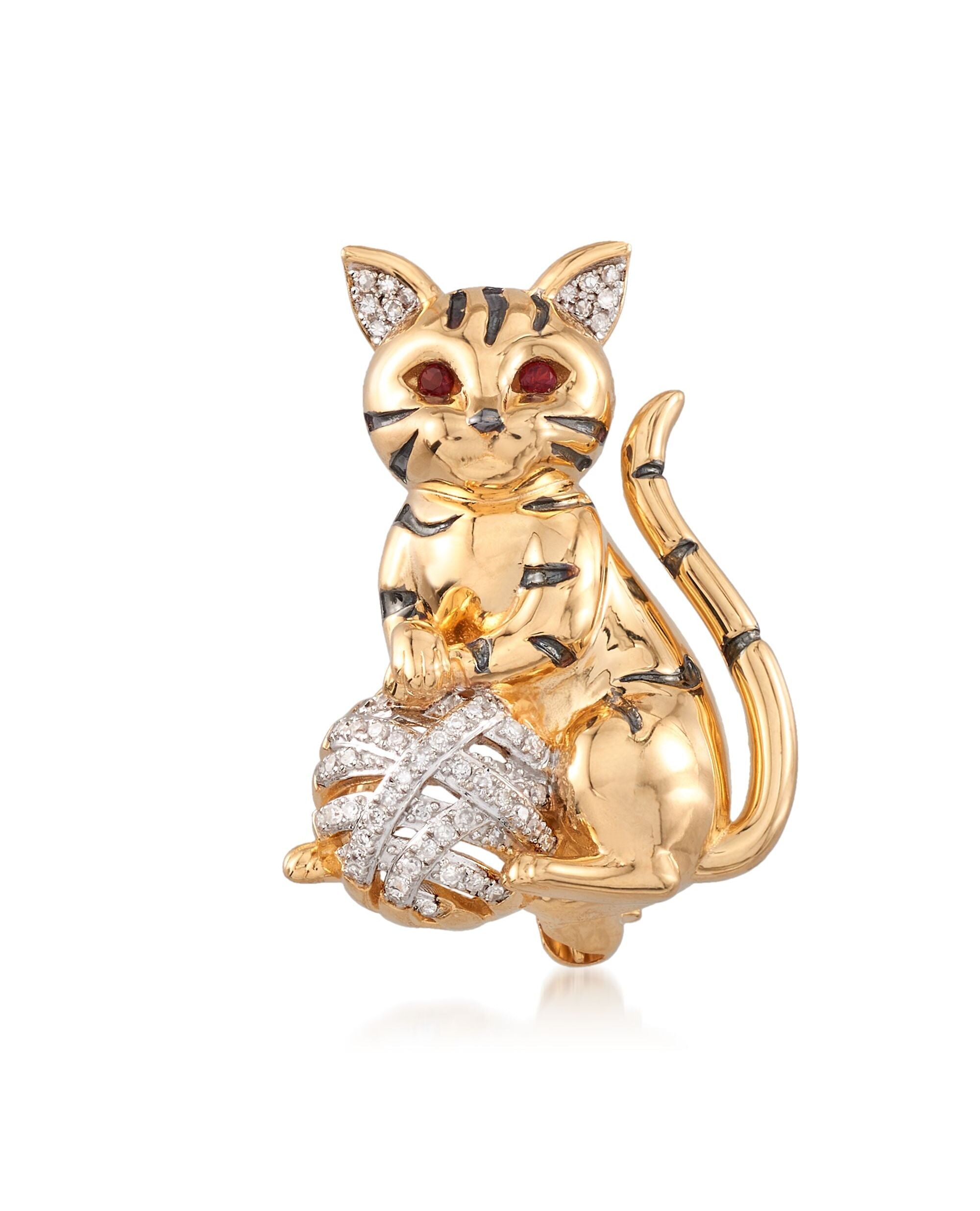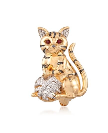 Ross-Simons Diamond Cat Pin Pendant With Garnet Accents in 18kt Gold Over Sterling