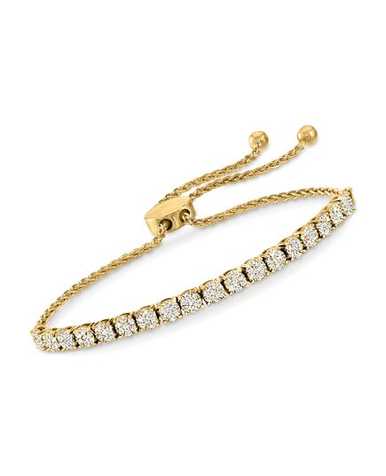 Ross-Simons Diamond Cluster Bolo Bracelet in 18kt Gold Over Sterling