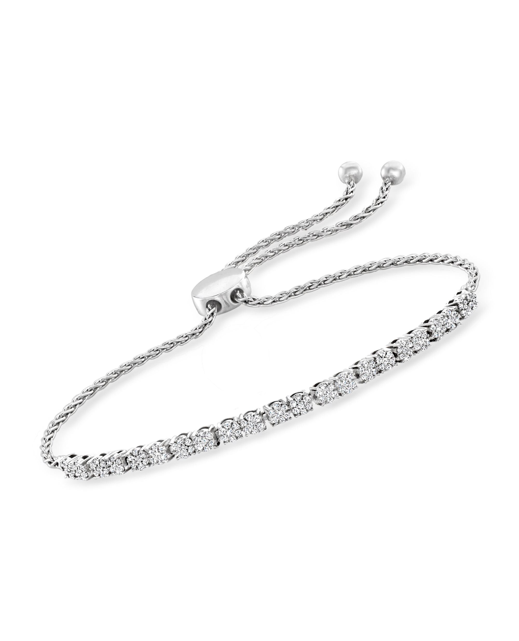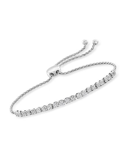 Ross-Simons Diamond Cluster Bolo Bracelet in Sterling Silver