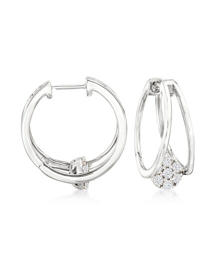 Ross-Simons Diamond Cluster Double-Hoop Earrings in Sterling Silver