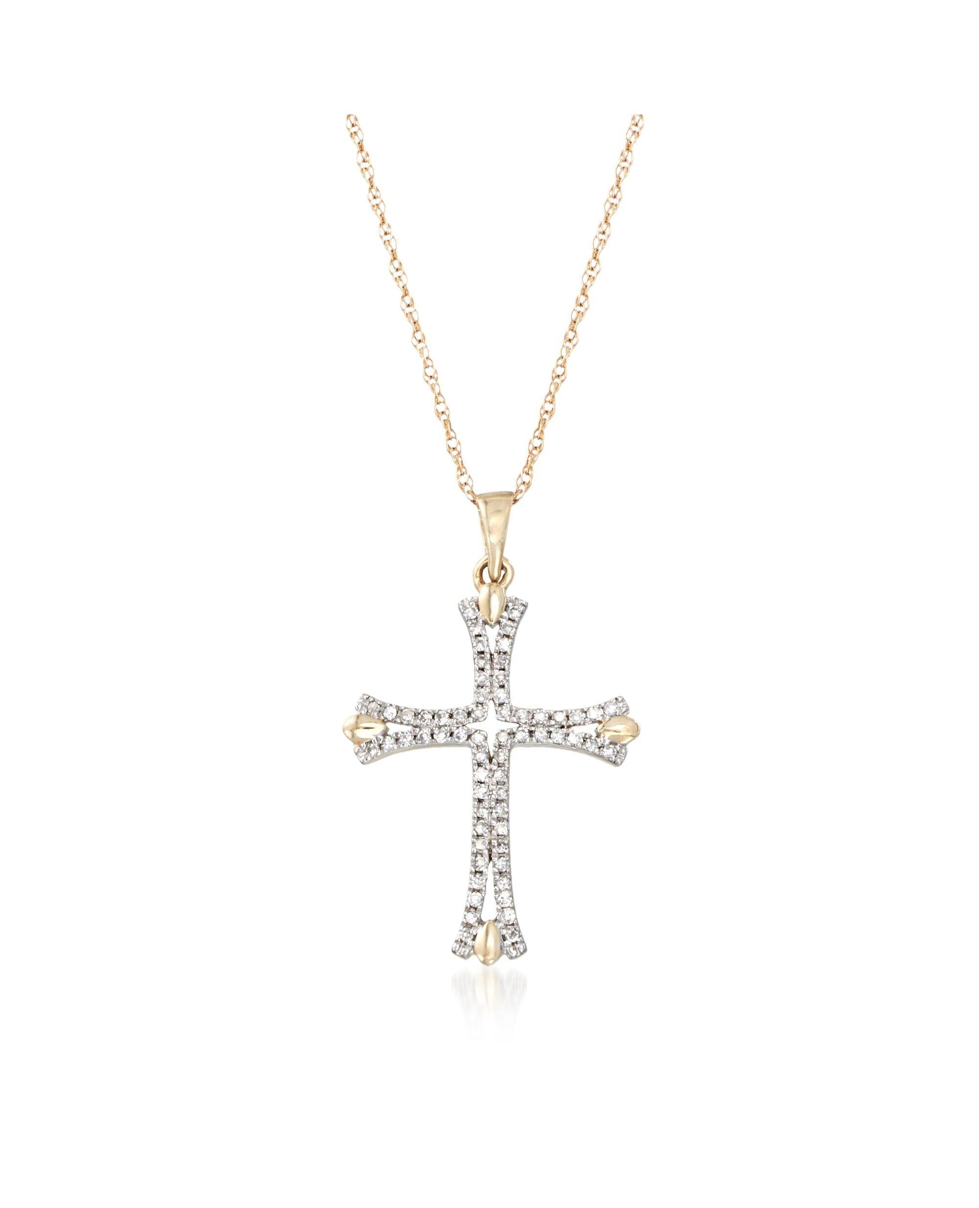 Ross-Simons Diamond Cross Pendant Necklace in 14kt Yellow Gold