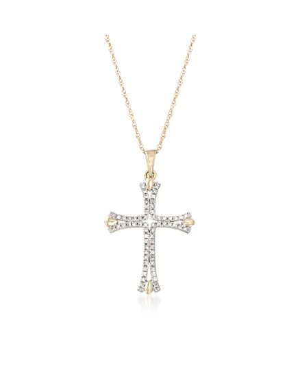 Established in 1952, Ross-Simons brings jewelry classics into the modern era. A beautiful way to wear your faith. On this chic variation of the Cross of Saint John, the curved arms of the motif are lined with 0.12 ct. t.w. diamond rounds. Set in 14kt yellow gold for a high-contrast look. Suspends from a rope chain with a springring clasp. Diamond cross pendant necklace. Necklace drop length - 1 inch long. Necklace drop width - 5/8 inch wide. Each Ross-Simons item arrives in a fine jewelry presentation box. Shop Ross-Simons jewelry risk-free as all items include a 30-day, 100% money-back guarantee.Stone InformationGem Type 1 - DiamondStone Cut 1 - Good-CutStone Color 1 - I-JStone Clarity 1 - I1Stone Shape 1 - Round-ShapeStone Creation Method 1 - NaturalStone Treatment Method 1 - Not-TreatedStone Weight 1 - 0.12 CaratsNumber Of Stones 1 - 62